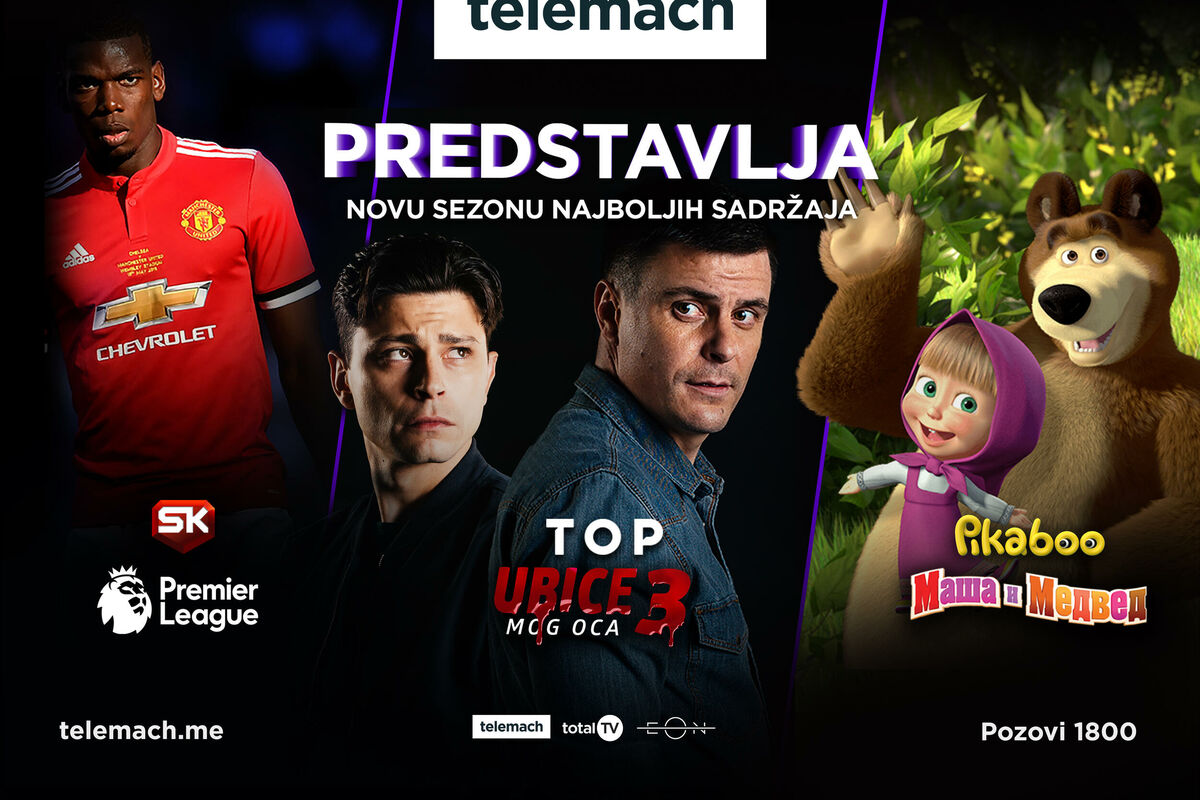 Nove sezone Ubica mog oca i Sjenki nad Balkanom, nova serija Dragana Bjelogrlića Žigosani u reketu, utakmice UEFA Lige Nacija, Maša i medved, Pepa Prase, Patrolne šape gledajte već u osnovnoj ponudi Telemach-a! Istovremeno, Telemach standardne TV pakete obogaćuje i dodatnim filmskim i dječijim kanalima.