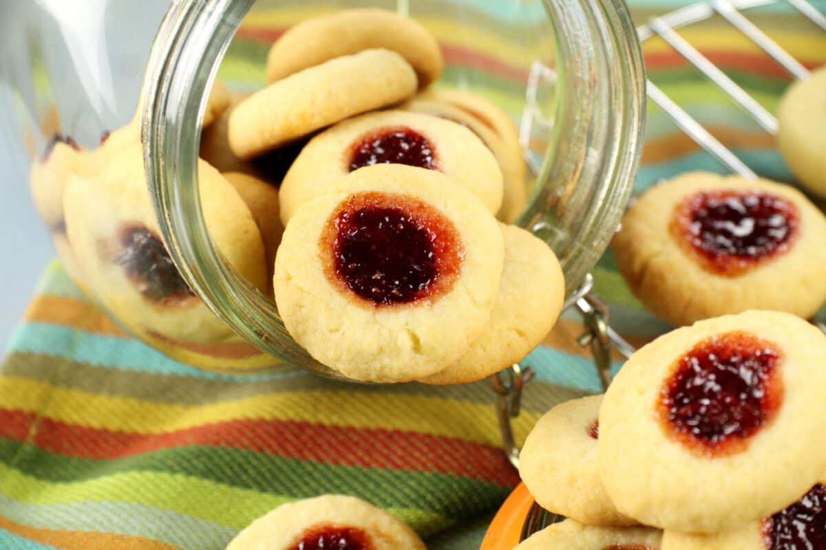 Priprema: 1. Rernu zagrijte na 190 C. Pomiješajte brašno, prašak za pecivo, šećer i puter dok ne dobijete sipkavu smjesu. Ovo možete zamijesiti i u blenderu. Dodajte i jaje i dobro zamijesite. 2. Nanesite malo brašna naruke pa tijesto oblikujte u valjak prečnika oko 5 cm. Nožem isjecite kolačiće širine 2 cm. Napravite na kolačićima malo udubljenje na sredini i tu stavite po kašičicu džema. 3. Pecite kolačiće na plehu sa papirom za pečenje oko 10-15 minuta, dok ne narastu i porumene. Sačekajte da se ohlade i poslužite.