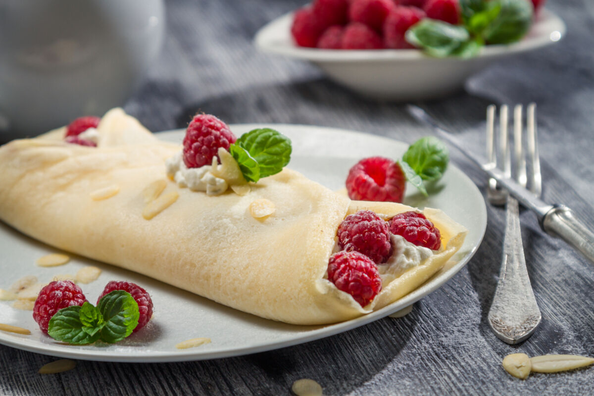 Kuvajte miješajući dok se ne zgusne. Filujte palačinke, uvucite im krajeve i savijte.