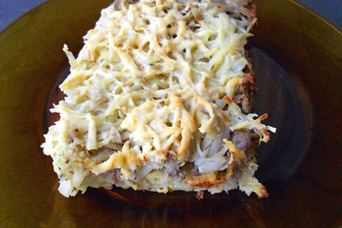 U pleh u kome ćete peći musaku, izrendajte polovinu očišćenog krompira, zatim stavite pripremljeno meso, pa odozgo drugu polovinu rendanog krompira i sve prelijte prelivom od mlijeka, jaja i začina.