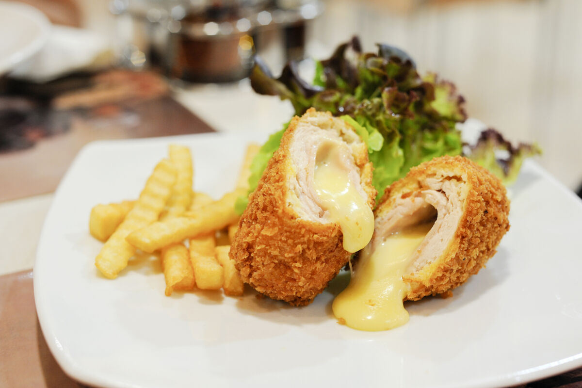 Bijelo meso isjeći na šnicle, izlupati, posoliti. Na šnicle staviti pola sira i uviti bijelo meso u rolnice. Pripremiti u tri činije sljedeće: u prvoj brašno i bijeli luk, u drugoj umućena jaja sa začinom, u trećoj prezle. Rolnice valjati prvo u brašno, pa u umućena jaja, pa u prezle i pržiti u dubokom ulju na srednjoj temperaturi.
