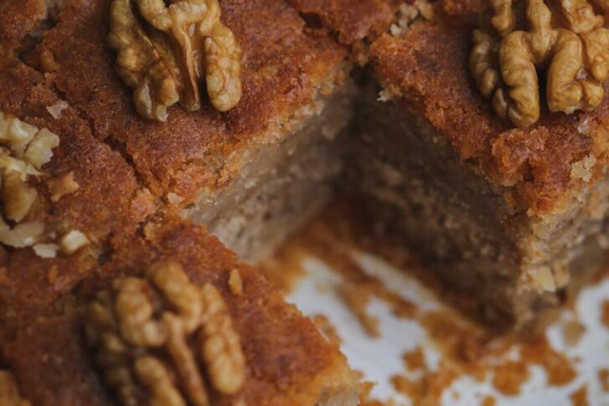 Ispečeni kolač zalijte hladnim sirupom kada ga izvadite iz rerne. Polako zalivajte, dajte kolaču vremena da postepeno upije sav sirup. Ostavite da se ohladi, isijecite na kocke i ukrasite orasima, po vašoj želji, piše na stranici milinkuvar.com.