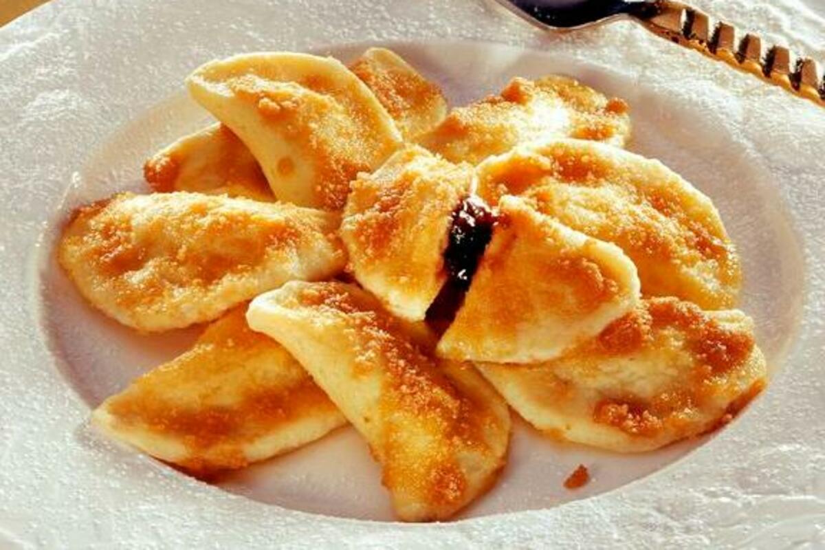 Razviti tanko komad tijesta i na jednu polovinu staviti o kašičicu pekmeza. Tijesto s pekmezom prekriti drugom polovinom tijesta i prstima utisnuti tijesto oko svake tačke pekmeza.