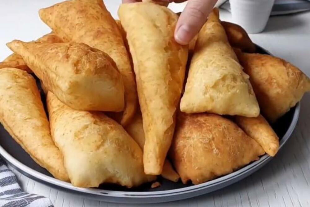 Umutiti jaje, dodati jogurt i veći dio brašna, 300-350 g, so i prašak za pecivo, kratko sjediniti, pa dodati i ulje. Zamijesiti tijesto na pobrašnjenoj podlozi. Dodavati preostalo brašno i mijesiti tek toliko da se formira lopta od tijesta. Rastanjiti je oklagijom na debljinu od 5mm, pa isjeći na 16 trouglova. Zagrijati ulje u šerpici, pa spuštati trougliće tako što u ulje stavljate onu stranu trougla koja je bila gore. Pržiti dok ne vidite pukotine na tijestu i da je krenulo da raste, pa okrenuti na drugu stranu i pržiti kratko. Još jednom kratko vratiti na prvu stranu tek da dobije zlatnu boju, pa izvaditi na ubrus da se ocijedi od viška ulja, mada uštipci zaista neće upiti mnogo ulja, objašnjeno je na Instagram stranici mikina_kuhinja.