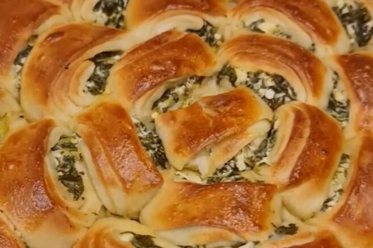 Rolat isjeci, i redjati u okrugli pleh. Postupak ponoviti sa svakom lopticom tijesta. Potom tijesto premazati sa dva umućena žumanceta, pomesana sa malo ulja. Pokriti krpom, i ostaviti 10-15 minuta da odstoji.