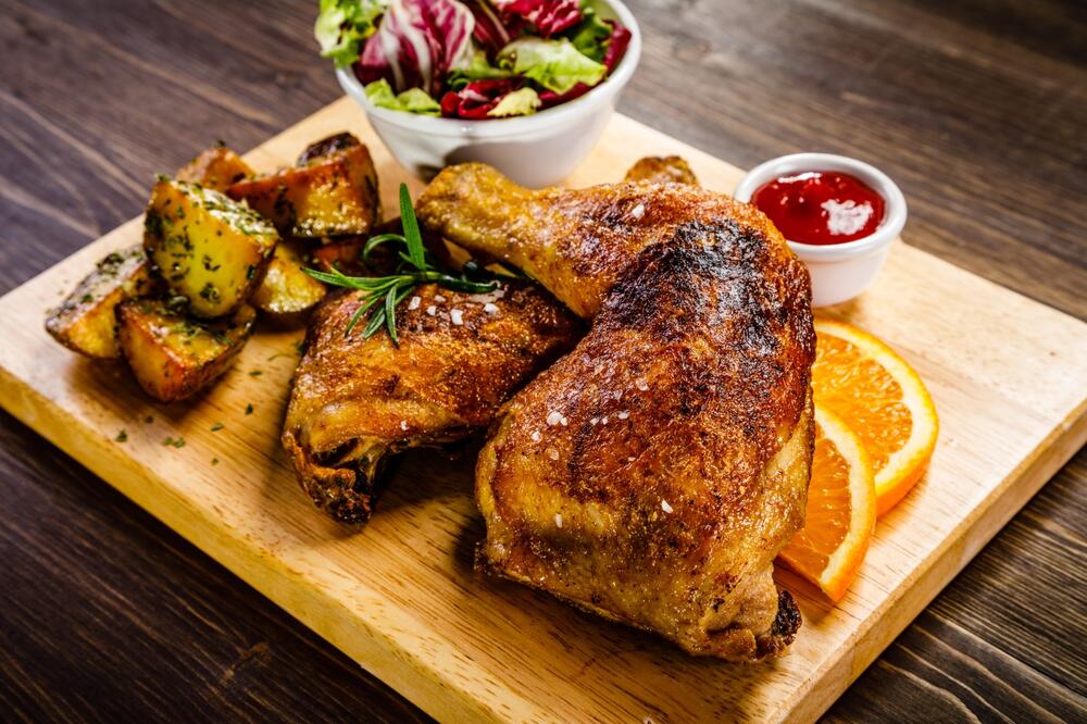 Priprema: Batake oprati i osušiti. Natrljati solju, bijelim lukom u prahu, majčinom dušicom i bijelim biberom, i preliti sokom od pomorandže, ostaviti sa strane 2-3 kašike, i 3-4 kašike maslinovog ulja. Neka odstoje pola sata, okretati ih povremeno. Boraniju oprati i presjeći na pola.