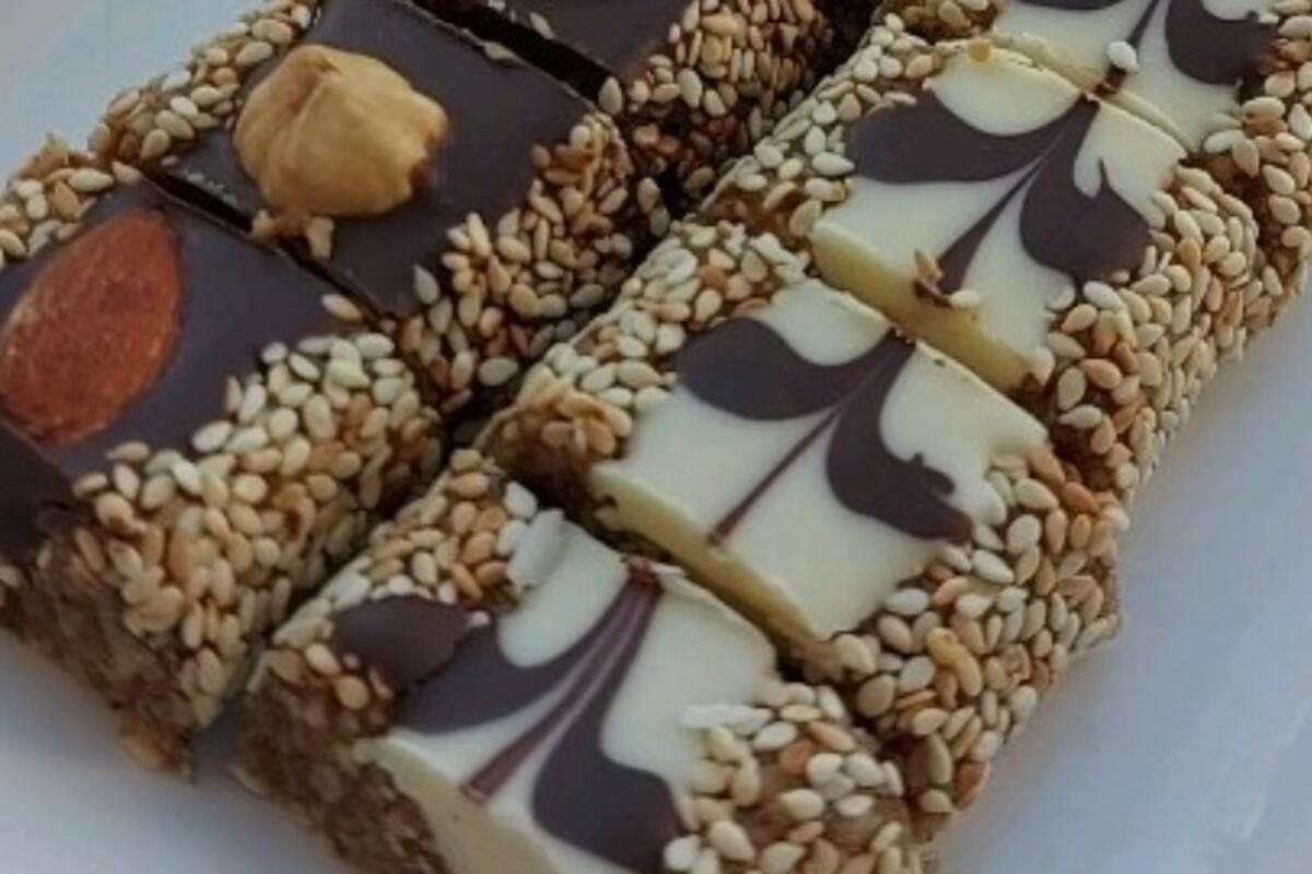 Na otopljenu crnu čokoladu možete staviti cijele lješnike, bademe, blanširane bademe...