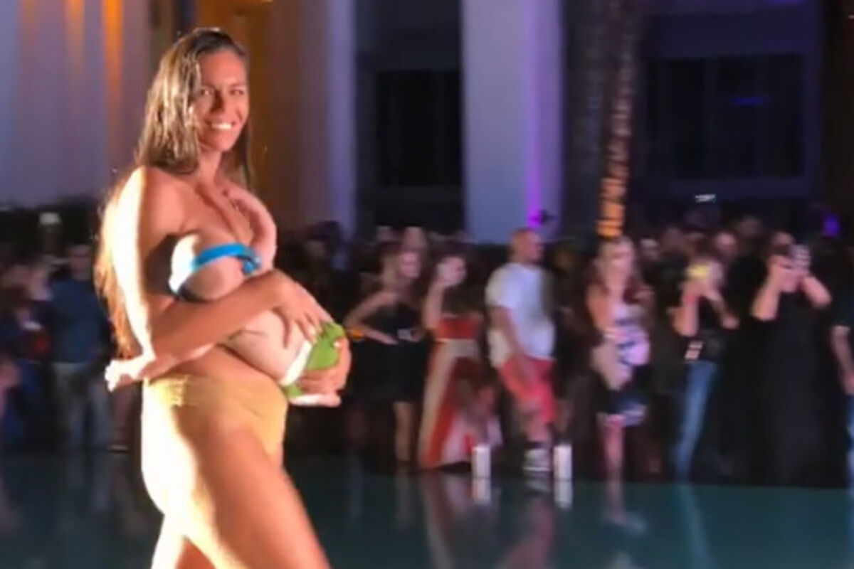 Manekenka Mara Martin izazvala je buru komentara kada se modnom pistom na reviji kupaćih kostima Sports Illustrated u Milanu prošetala dojeći bebu u naručju.