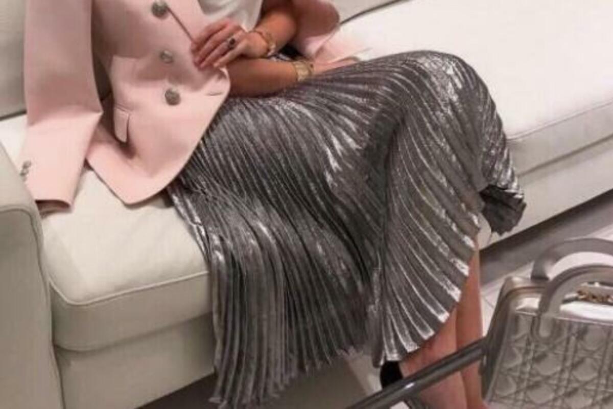 Srebrne mat šljokice daju posebnu eleganciju modnoj kombinaciji, a shearling jakna pravi kontrast i čini izdanje praznikom za oči.