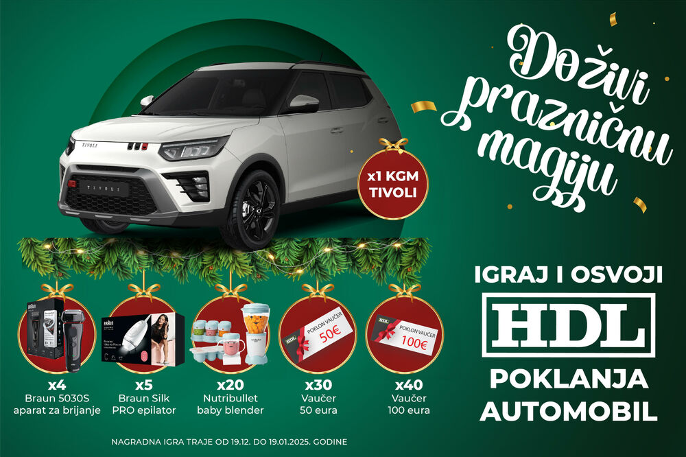 Izvlačenje srećnih dobitnika održaće se 24. januara 2025. godine u holu HDL prodavnice na Zabjelu.
