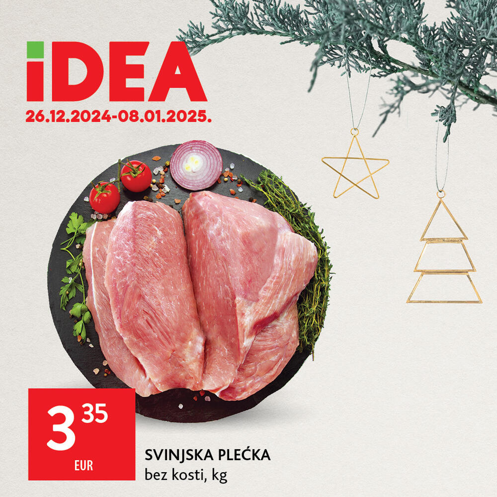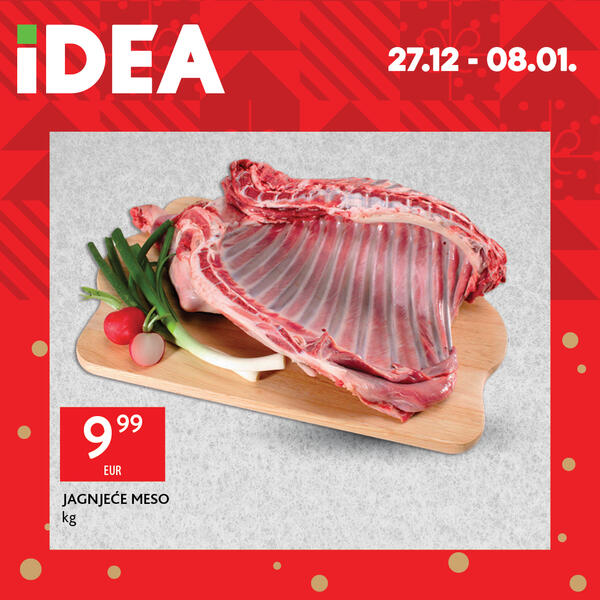 Svježe meso i riba, kao i pažljivo birani delikatesi, omogućiće vam da pripremite praznično jelo koje će oduševiti vaše goste. A kako je praznične zalogaje najbolje upotpuniti savršenom zdravicom, nazdravite uz pažljivo biranu selekciju vina, pjenušavih pića i drugih napitaka iz IDEA ponude. No, nemojte zaboraviti ni da se zasladite ukusnim desertima ili pažljivo biranim proizvidima iz IDEA paketića.