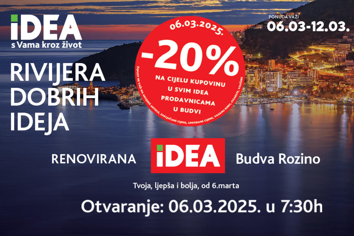 Uz to, za sve IDEA prodavnice koje se nalaze u Budvi pripremljena je specijalna akcijska ponuda koja važi od 6. do 12. marta.