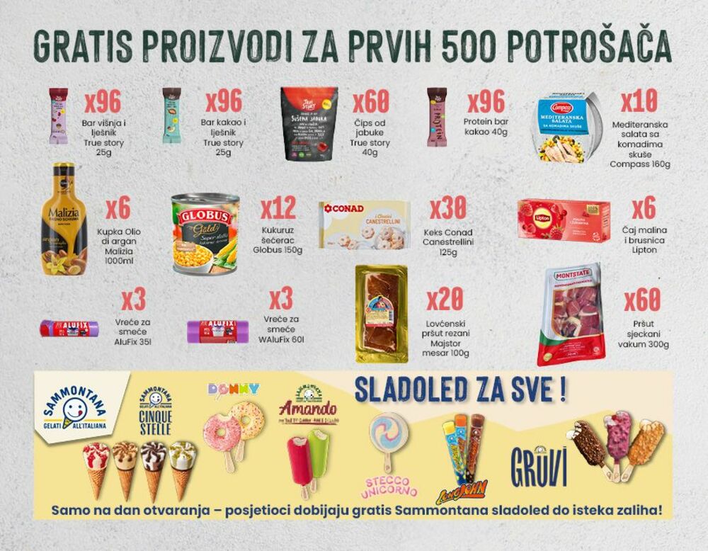 • Veliko otvaranje zakazano je za četvrtak, 15. maja u 10 časova, a prvih 500 potrošača tog dana dobiće gratis proizvode kao znak dobrodošlice.