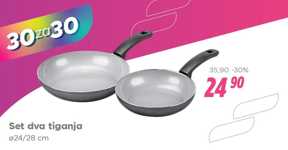 Set 2 tiganja: Neljepljivi premaz za savršene rezultate kuvanja. Set tiganja po super cijeni 24,90 eura (30% popusta).