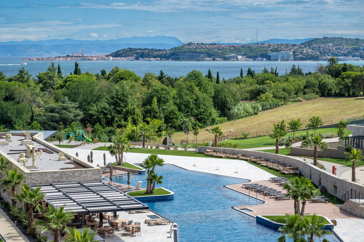 Ako posjetite Petram, vidjećete da nudi više od smještaja, pruža nesvakidašnje sadržaje koji odgovaraju savremenim navikama korisnika. Dva bazena predstavljaju prostorne orijentire: impozantni infinity rooftop bazen dužine 105 metara, i najduži ove vrste u Evropi, nalazi se na terasi glavnog kompleksa i pruža panoramski pogled ka Apeninskom poluostrvu i Veneciji, dok je drugi bazen prizemni uklopljen u pejzaž i okružen bujnim mediteranskim zelenilom i otvorenim nebom, odišući posebnim mirom i ugođajem.