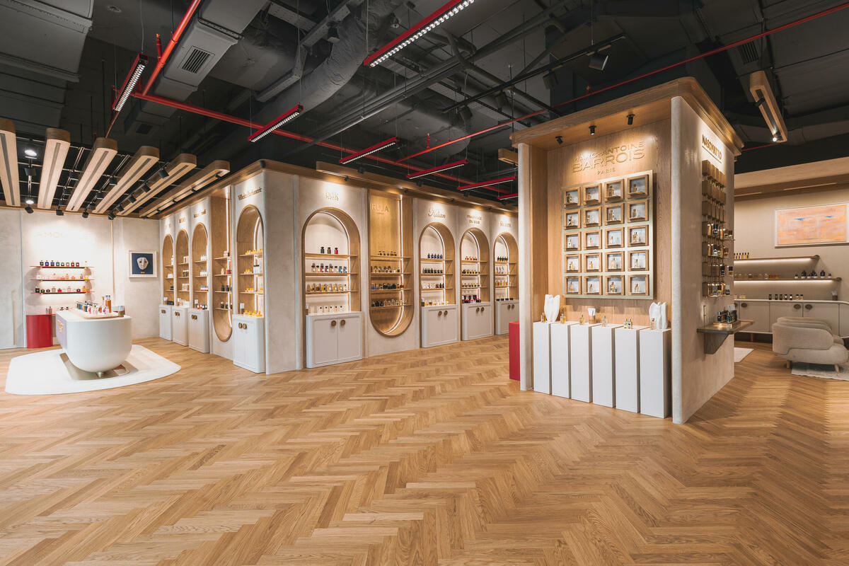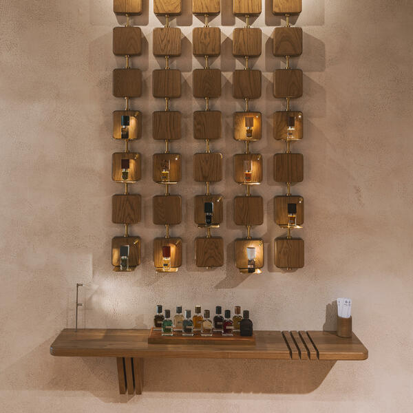 Poseban kuriozitet su umjetničke instalacije posvećene brendovima Marc-Antoine Barrois i Nasomatto: parfemi su izloženi na unikatnim drvenim blokovima, kao mali totemi – naglašavajući organsku, nekonvencionalnu prirodu i kultni status ovih parfemskih kuća.