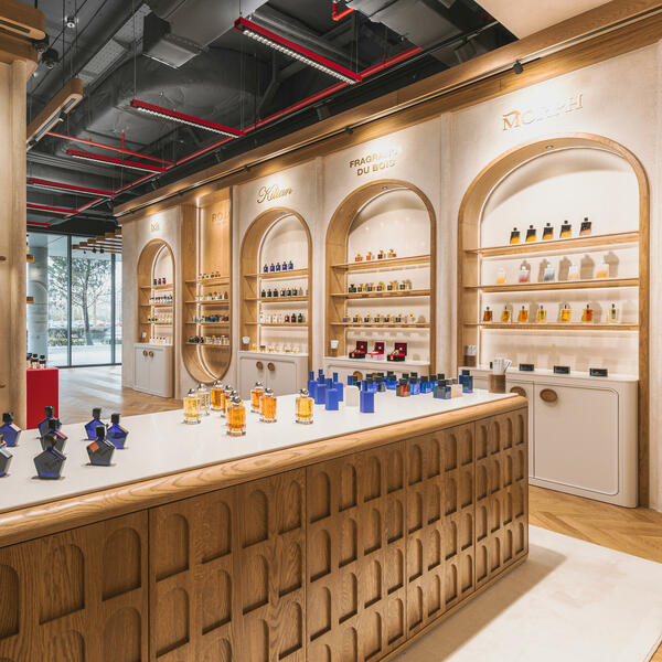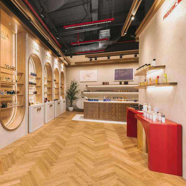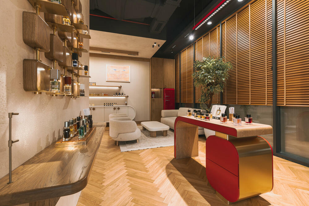 Ova svojevrsna riznica parfema zamišljena je kao iskustvo: intenzivno, lično i potpuno drugačije od klasične kupovine. Kao u teatru, kolekcije najprestižnijih svjetskih parfemskih kuća gordo stoje uokvirene u zaobljenim zlatnim nišama pretvarajući svaku bočicu u eksponat.