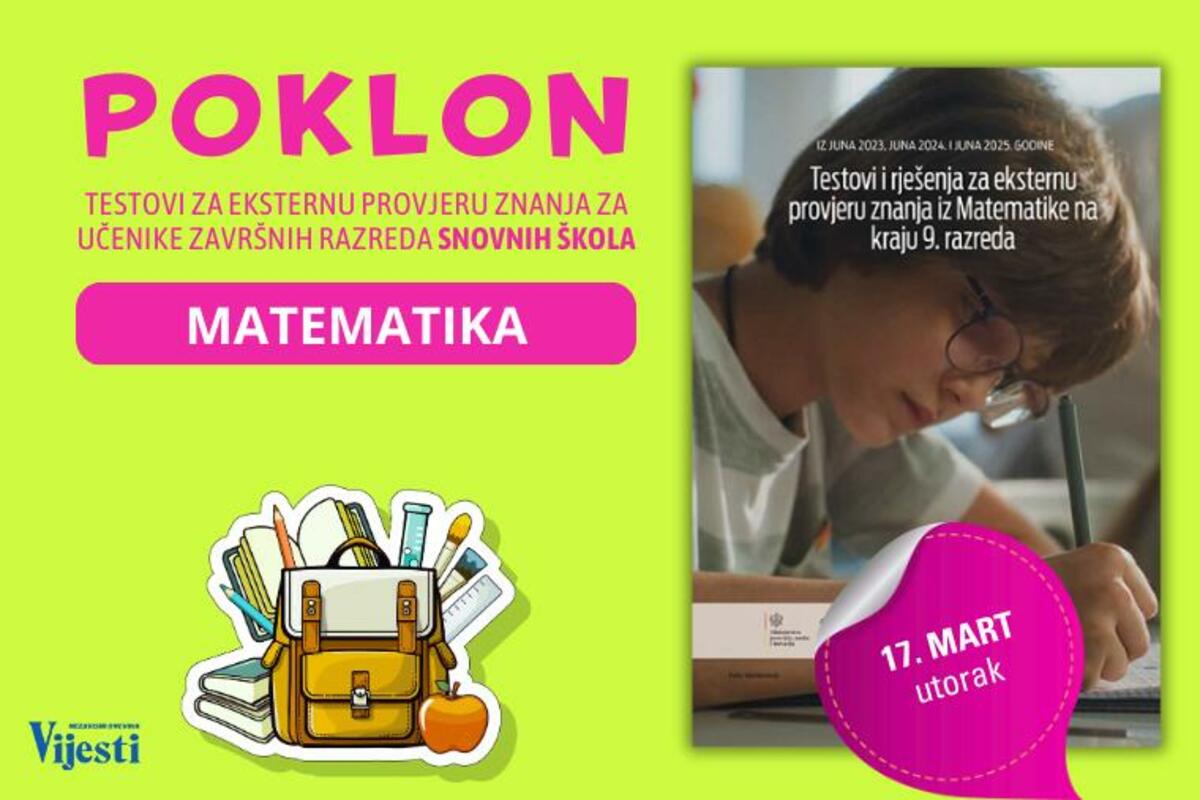 Vijesti, Ministarstvo prosvjete, nauke i inovacija i Ispitni centar, uz svaki primjerak štampanog izdanja poklanjaju testove i rješenja za eksternu provjeru znanja iz matematike za učenike završnih razreda osnovnih škola.