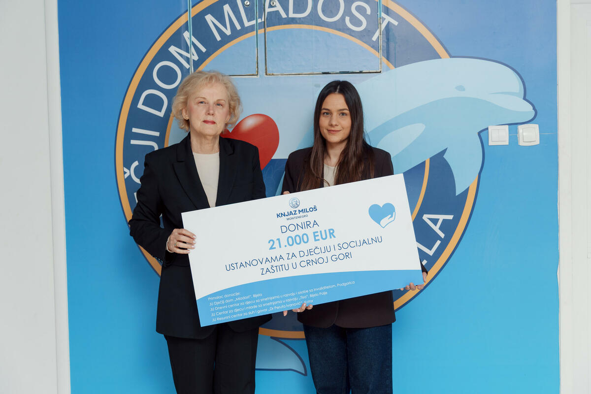 Donacija je namijenjena JU Dječiji dom „Mladost“ Bijela, jedinoj ustanovi u Crnoj Gori za zbrinjavanje djece bez roditeljskog staranja i djece čiji je razvoj otežan usljed porodičnih okolnosti, zatim Dnevnom centru za djecu sa smetnjama u razvoju i osobama sa invaliditetom u Podgorici, Centru za djecu i mlade sa smetnjama u razvoju „Tisa“ u Bijelom Polju, kao i Resursnom centru za sluh i govor „Dr Peruta Ivanović“ u Kotoru, koje pružaju podršku za više od 300 djece i mladih.