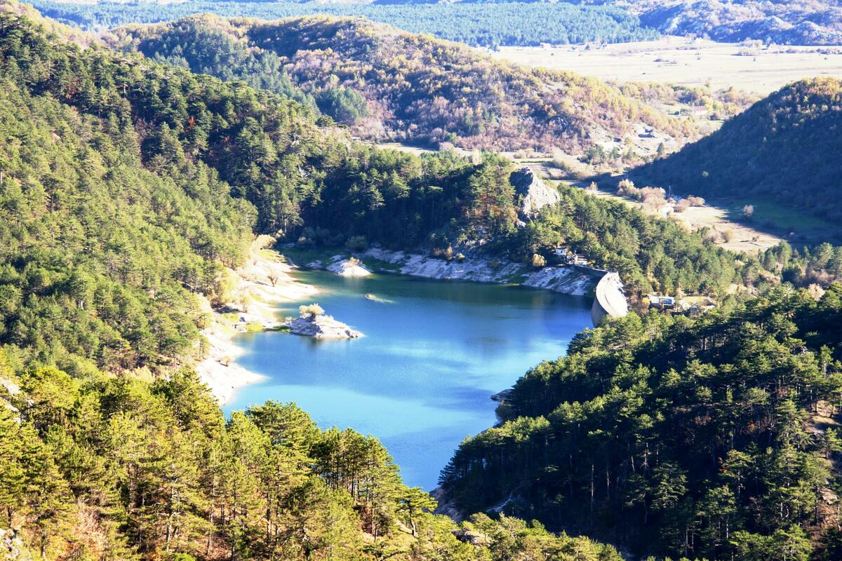 Bilećko Lake with its smaller part, 17.2%, belongs to the municipality of Niksic. It is part of the natural border with the municipality of Bileca. Lake water is clean and warm, so it is used for swimming, diving and fishing. Above the lake shores is the most important archaeological site Crvena stijena.