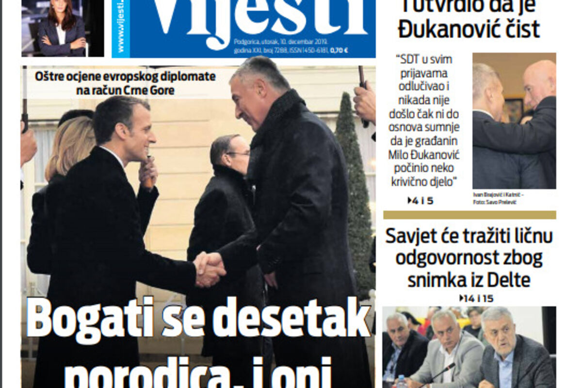 Naslovna Naslovne strane Naslovna strana "Vijesti" za 10. decembar 859 pregleda 0 komentar(a) Naslovna strana "Vijesti" za 10. decembar, Foto: "Vijesti" Autor: Vijesti 10.12.2019. 07:24h Bonus video: Vijesti
