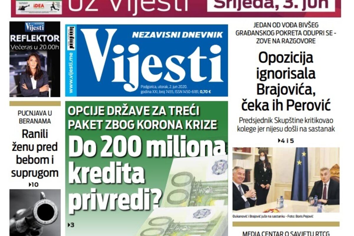 Naslovna Naslovne strane Naslovna strana "Vijesti" za 2. jun 2020. 945 pregleda 0 komentar(a) Naslovna strana "Vijesti" za 2. jun 2020., Foto: Vijesti Vijesti online 02.06.2020. 06:55h Bonus video: Vijesti Vijestinaslovna strananaslovnica
