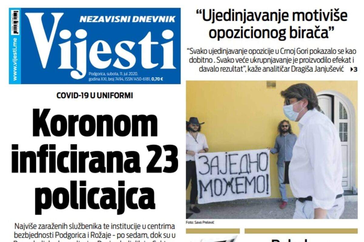 Naslovna Naslovne strane Naslovna strana "Vijesti" za subotu 11. jul 2020. godine 2392 pregleda 0 komentar(a) Naslovna strana "Vijesti" za subotu 11. jul 2020. godine, Foto: Vijesti Vijesti online 11.07.2020. 08:00h Bonus video: Vijesti ND VijestiVijestiNaslovna strananaslovnica