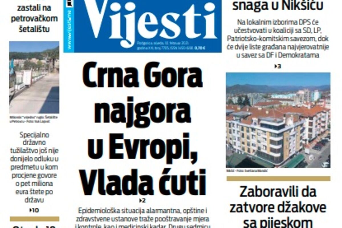 Naslovna Naslovne strane Naslovna strana "Vijesti" za srijedu 10. februar 2021. godine 3344 pregleda 0 komentar(a) Naslovna strana "Vijesti" za srijedu 10. februar 2021. godine, Foto: Vijesti Vijesti online 10.02.2021. 07:00h Naslovna strana "Vijesti" za srijedu 10. februar 2021. godine. Bonus video: Vijesti Naslovna strananaslovna stranaVijestiND VijestiDaily pressnaslovnicaNaslovnica