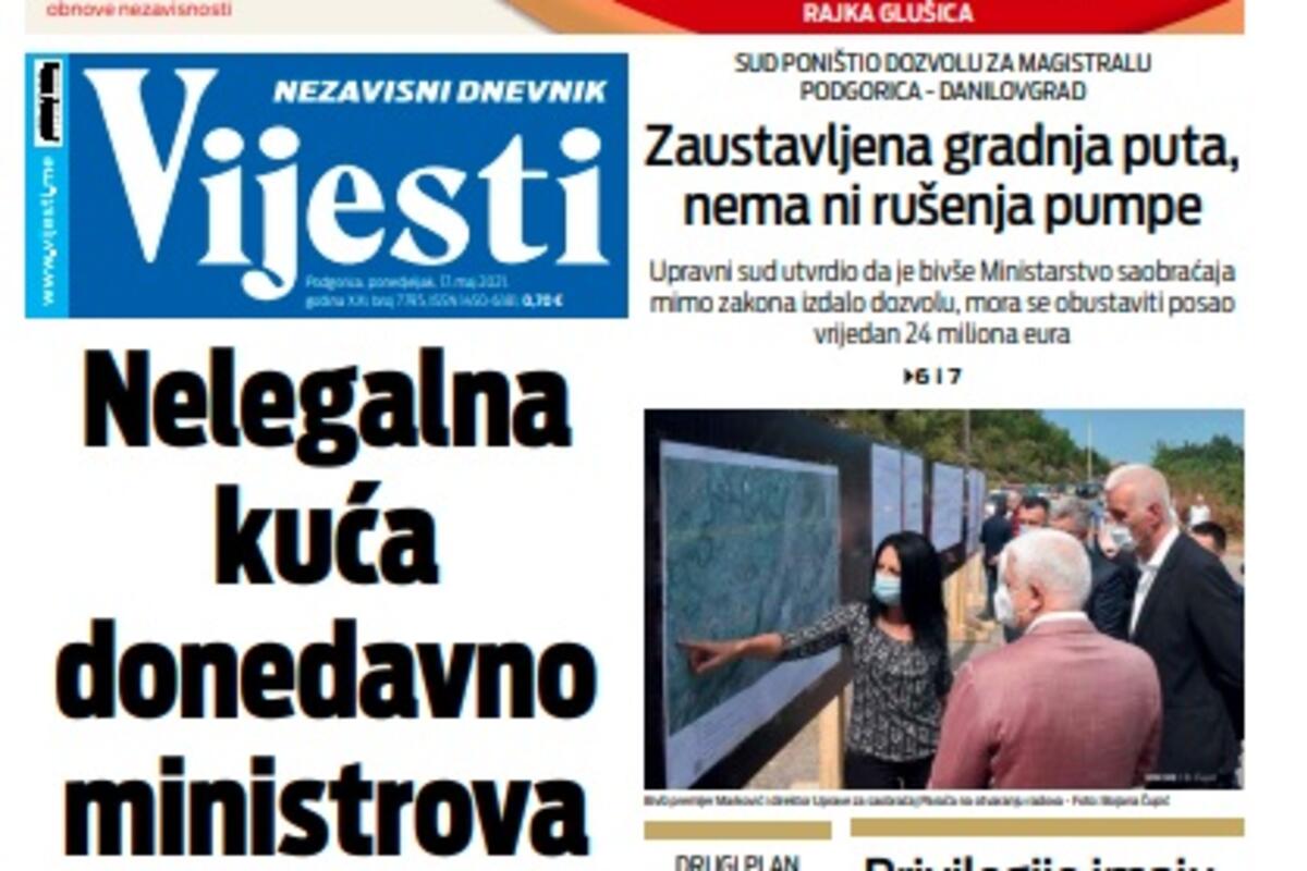 Naslovna Naslovne strane Naslovna strana "Vijesti" za ponedjeljak 17. maj 2021. godine 5273 pregleda 0 komentar(a) Naslovna strana "Vijesti" za ponedjeljak 17. maj 2021. godine, Foto: Vijesti Vijesti online 17.05.2021. 07:00h Naslovna strana "Vijesti" za ponedjeljak 17. maj 2021. godine. Bonus video: Vijesti Naslovna strananaslovna stranaNaslovna strana VijestiND VijestiNezavisni dnevnik VijestiDaily pressVijestinaslovnicaNaslovnica
