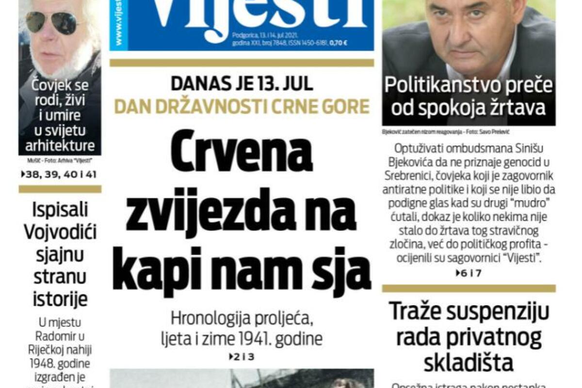 Naslovna Naslovne strane Naslovna strana "Vijesti" za utorak 13. jul i srijedu 14. jul 2021. godine 2767 pregleda 0 komentar(a) Foto: Vijesti Vijesti online 13.07.2021. 06:00h Naslovna strana "Vijesti" za utorak 13. jul 2021. godine Bonus video: Vijesti ND VijestiNaslovna stranaVijesti