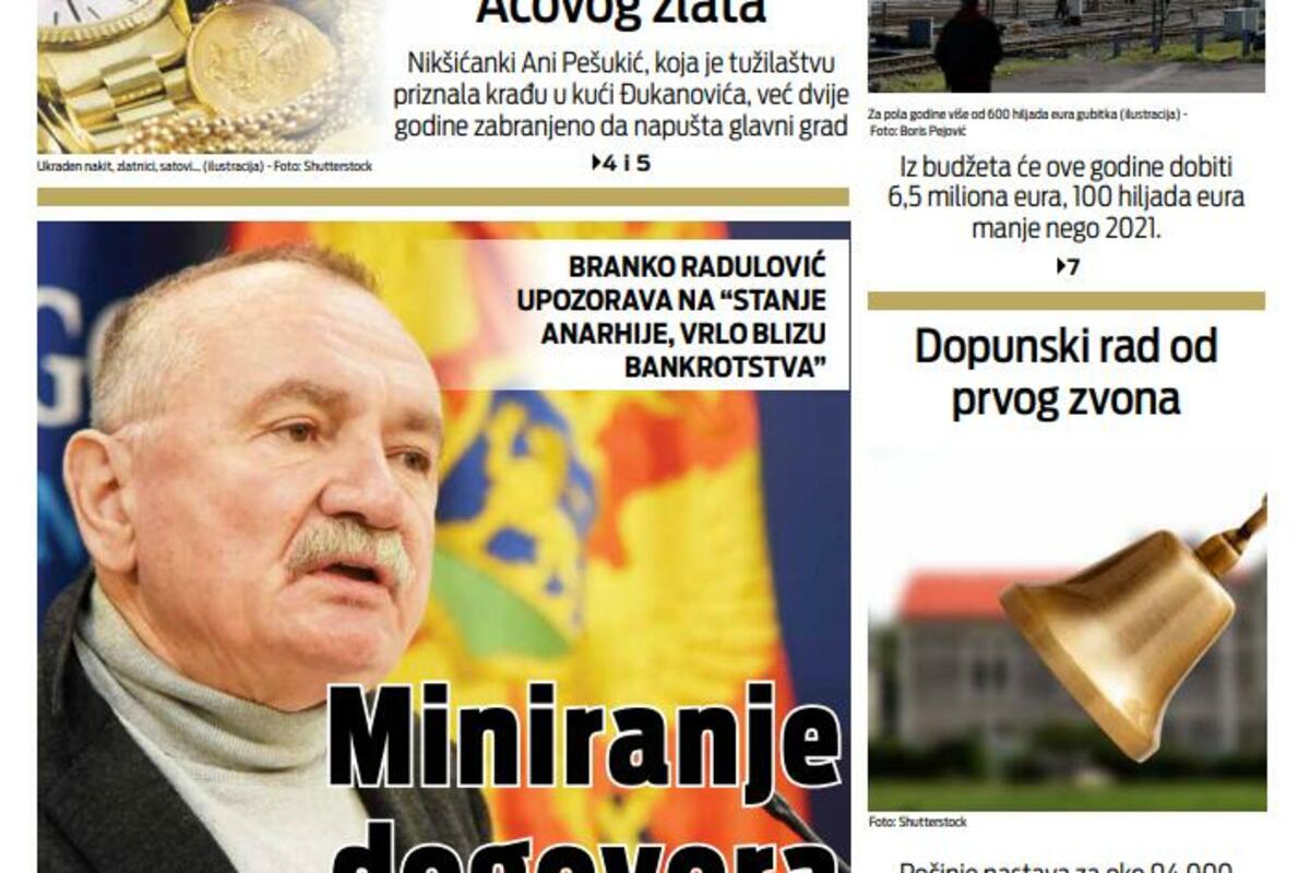 Naslovna Naslovne strane Naslovna strana "Vijesti" za ponedjeljak, 5. septembar 2022. godine 4172 pregleda 0 komentar(a) Foto: Vijesti K K.B. 05.09.2022. 06:00h foto: Vijesti Bonus video: Vijesti Naslovna strananaslovnicanaslovne straneNaslovna strana VijestiND VijestiNezavisni dnevnik Vijesti