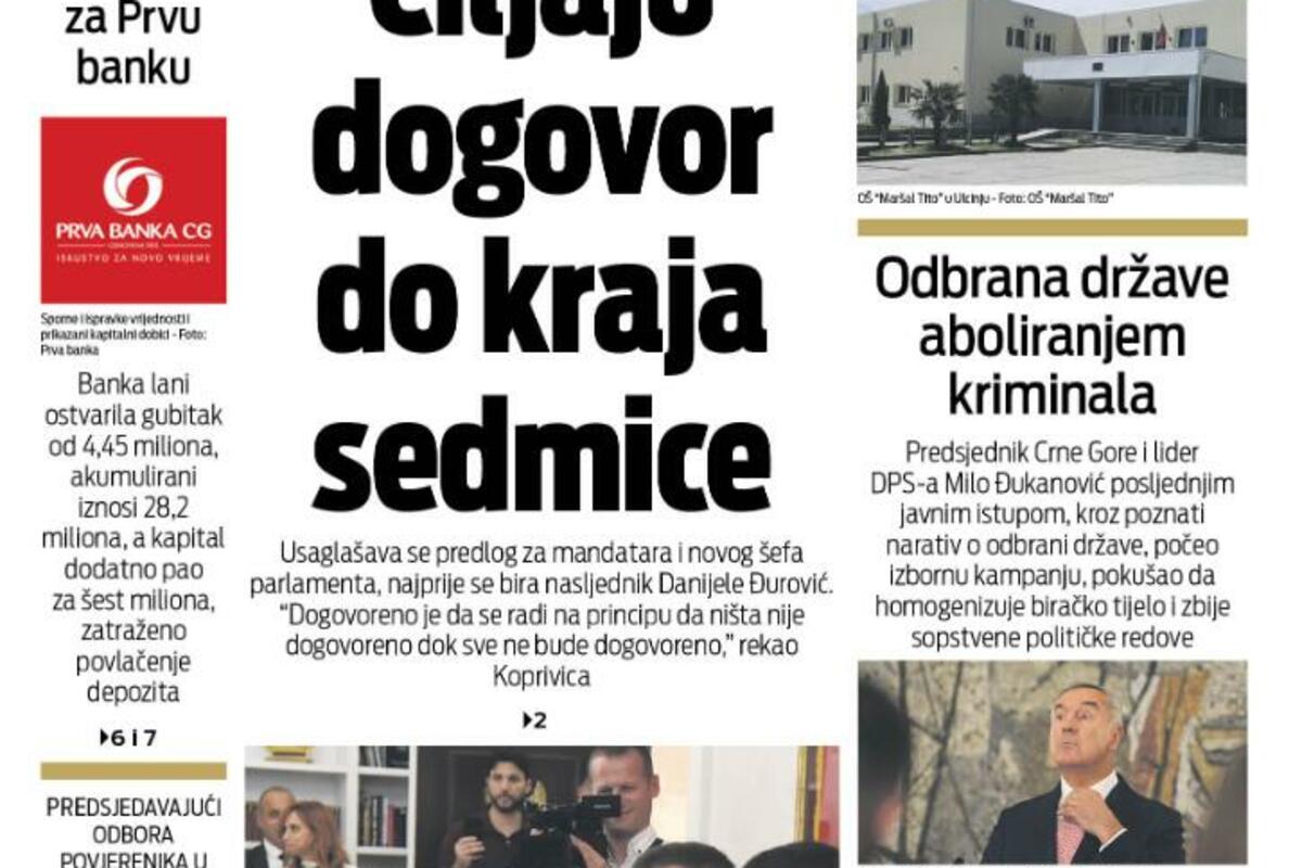 Naslovna Naslovne strane Naslovna strana "Vijesti" za 7. septembar 2022. godine 6061 pregleda 0 komentar(a) Foto: Vijesti Vijesti online 07.09.2022. 06:00h foto: Vijesti Bonus video: Vijesti ND VijestiVijestinaslovnicanaslovna strana