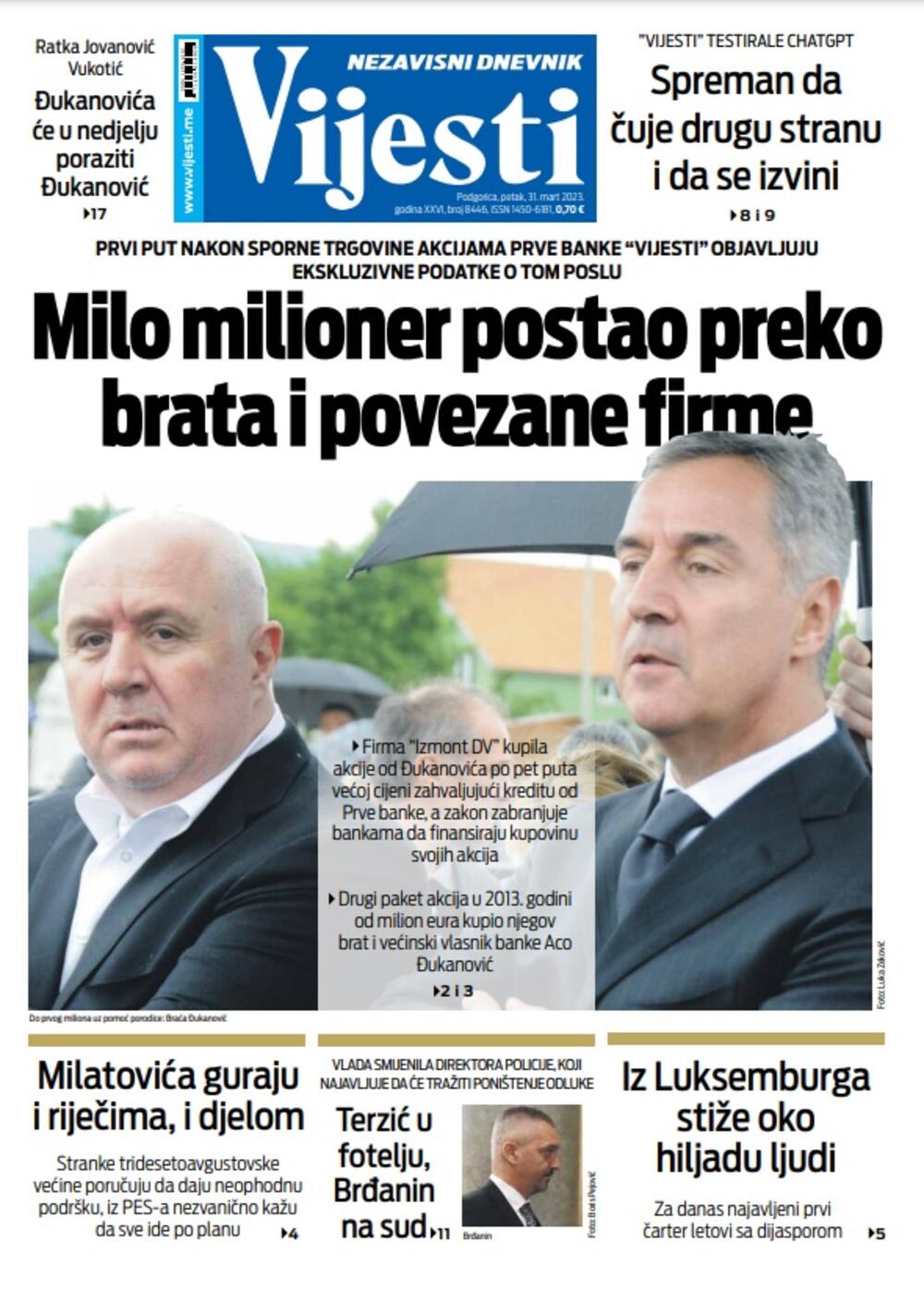 Naslovna Naslovne strane Naslovna strana "Vijesti" za 31. mart 2023. godine 5289 pregleda 1 komentar(a) Naslovna strana "Vijesti" za 31. mart 2023. godine, Foto: Vijesti Vijesti online 31.03.2023. 06:00h foto: Vijesti Bonus video: Vijesti VijestiND Vijestinaslovna strana