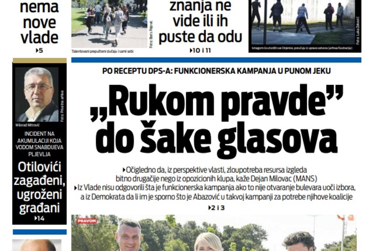 Naslovna Naslovne strane Naslovna strana "Vijesti" za 1. jun 2023. Pogledajte glavne priče: 3820 pregleda 2 komentar(a) Foto: Vijesti Vijesti online 01.06.2023. 06:00h foto: Vijesti Bonus video: Vijesti VijestiND Vijestinaslovna stranaVijesti promo