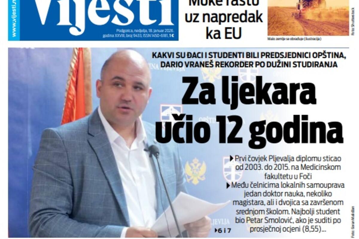 Naslovna Naslovne strane Naslovna strana "Vijesti" za 18. januar 2026. Pogledajte glavne priče: 2425 pregleda 0 komentar(a) Foto: Vijesti Vijesti online 18.01.2026. 07:00h foto: Vijesti Bonus video: Vijesti Naslovna strananaslovna stranaNaslovna strana VijestiVijestiND VijestiNezavisni dnevnik VijestiNaslovnicanaslovnicaDaily press