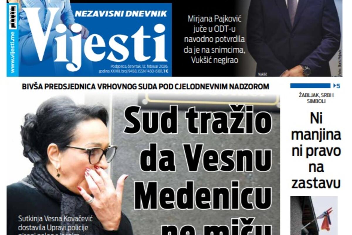 Naslovna Naslovne strane Naslovna strana "Vijesti" za 12. februar 2026. Poledajte glavne priče: 3978 pregleda 0 komentar(a) Foto: Vijesti Vijesti online 12.02.2026. 06:00h foto: Vijesti Bonus video: Vijesti Naslovna strananaslovna stranaNaslovna strana VijestiVijestiND VijestiNezavisni dnevnik VijestiNaslovnicanaslovnicaDaily press