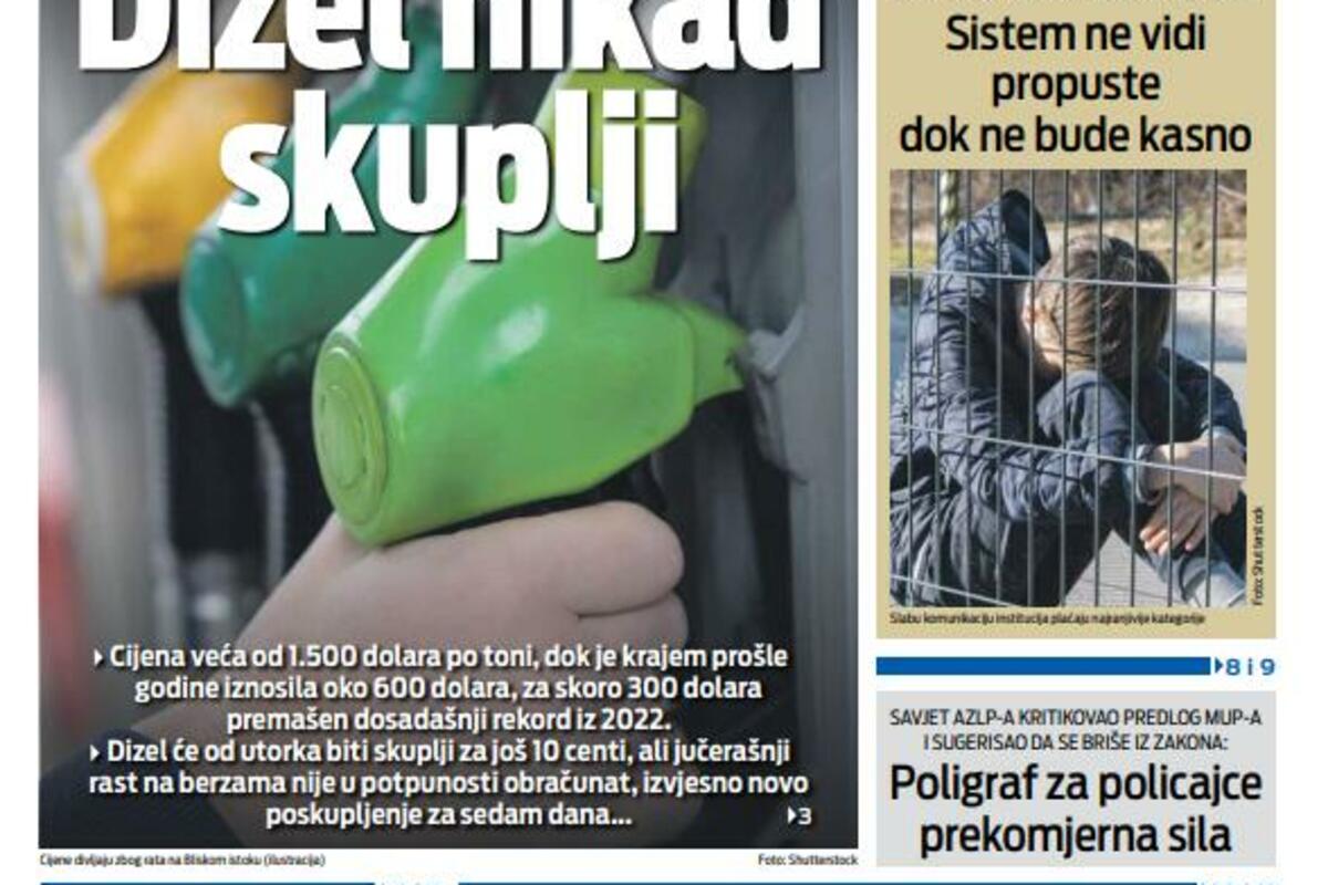 Naslovna Naslovne strane Naslovna strana "Vijesti" za 4. april 2026. Pogledajte glavne priče: 1382 pregleda 0 komentar(a) Foto: Vijesti Vijesti online 04.04.2026. 06:55h foto: Vijesti Bonus video: Vijesti VijestiND Vijestinaslovna strana