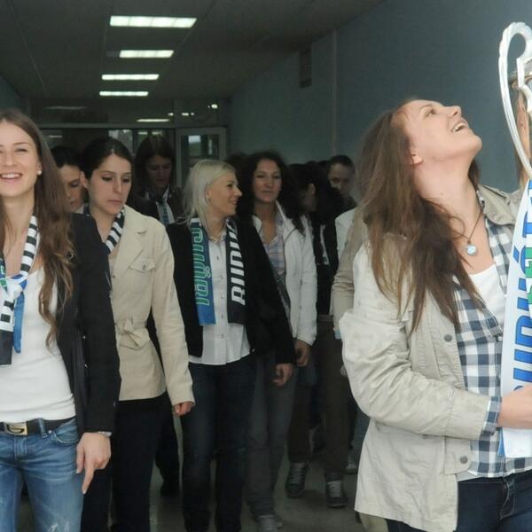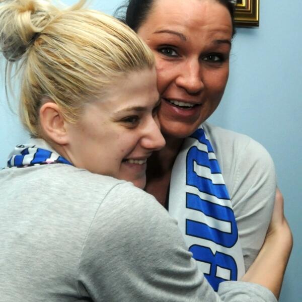 Naslovna Sport I za Bubu pehar Nakon prijema u vili „Gorica“, čitava ekipa Budućnosti otišla je u bolnicu da vidi povrijeđenu saigračicu Majdu Mehmedović. Donijeli su joj šampionski pehar, koji nije mogla sama da drži, kao i medalju namijenjenu prvakinjama Evrope. 104 pregleda 8 komentar(a) Vijesti online 15.05.2012. 11:02h Ažurirano: 15.05.2012. 11:02h Galerija 1 / 5 Foto: Luka Zeković Bonus video: Vijesti Majda Mehmedovićrukometašice budućnosti
