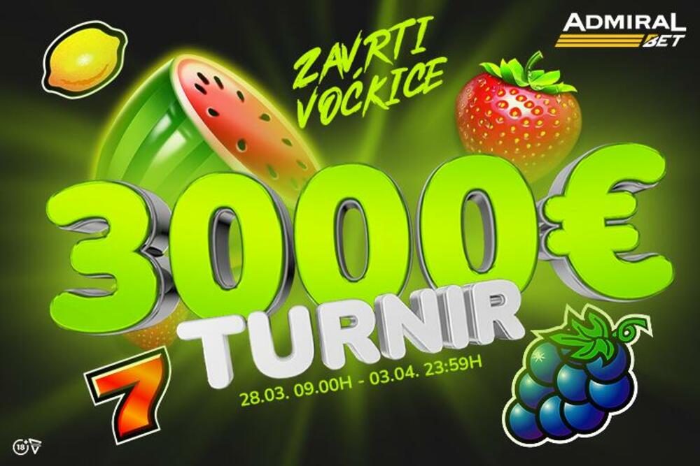 Izaberi jednu od 32 slot igre u kojima dominira voće i bori se za nagradni fond od 3000 eura.