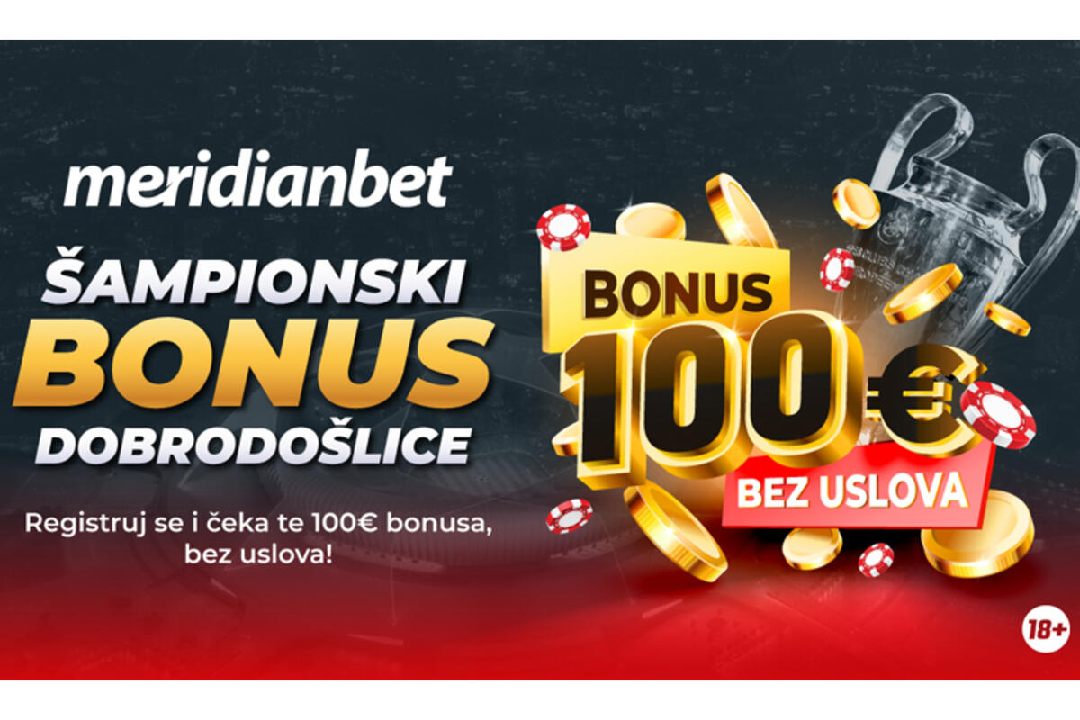 Da, dobro ste pročitali! To je ukupno 100€ bonusa, bez ikakvih dodatnih uslova! Budi uvijek na dobitku, igraj u Meridianu! Iznenađenjima nikad kraja!