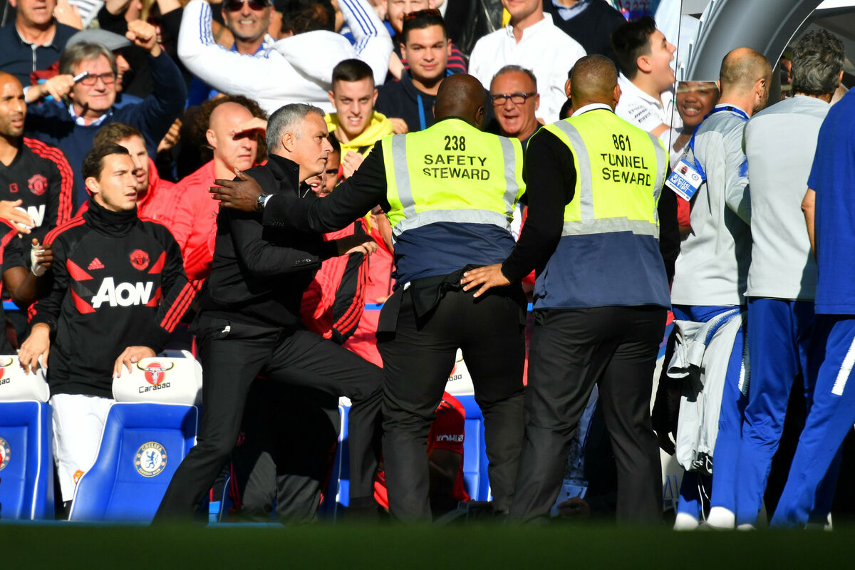 Stvorila se gužva na ulazu u svlačionice, a nakon desetak sekundi, te razgovora sa Mauriciom Sarijem, Murinjo se vratio na mjesto i mirno sačekao da sve prođe...