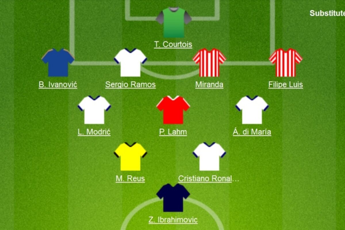 U najboljih 11 su i desni bek Čelzija Branislav Ivanović, kapiten Bajerna Filip Lam, koji je pod vođstvom Pepa Gvardiole prekomandovan na poziciju zadnjeg veznog, te Marko Rojs iz Borusije i napadač Pari Sen Žermena Zlatan Ibrahimović.