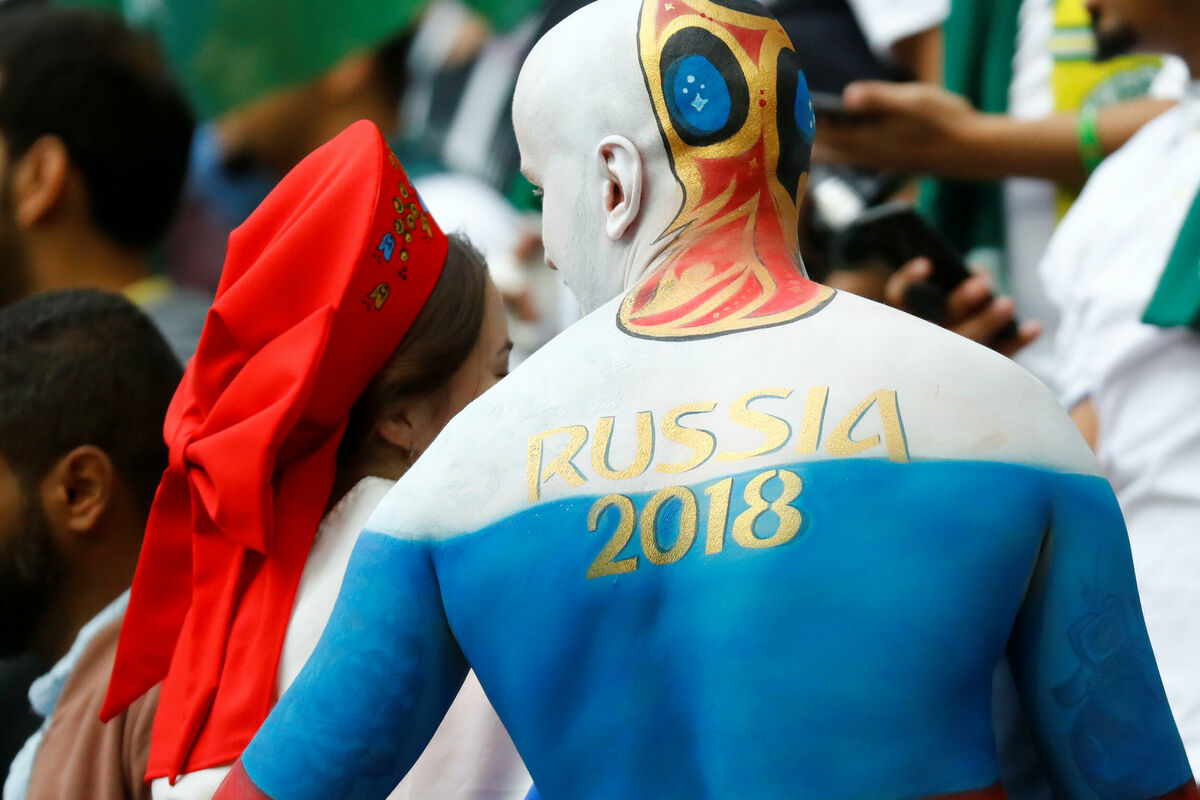 Muškarac se na stadion "Lužnjiki" u Moskvi stigao u bojama ruske zastave, a bojom je na glavi oslikao logo Mundijala.
