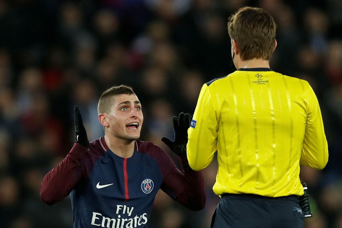 Verati je dobio drugi žuti karton nakon sat vremena duela PSŽ - Real, u revanšu osmine finala Lige šampiona, kada je gestikulirao u pravcu sudije zbog jednog faula.