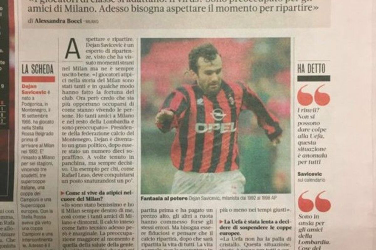 "Riječ Genija", tako italijanski list najavljuje priču sa bivšim asom Milana, o dramatičnoj situaciji, fudbalu, "rosonerima"...