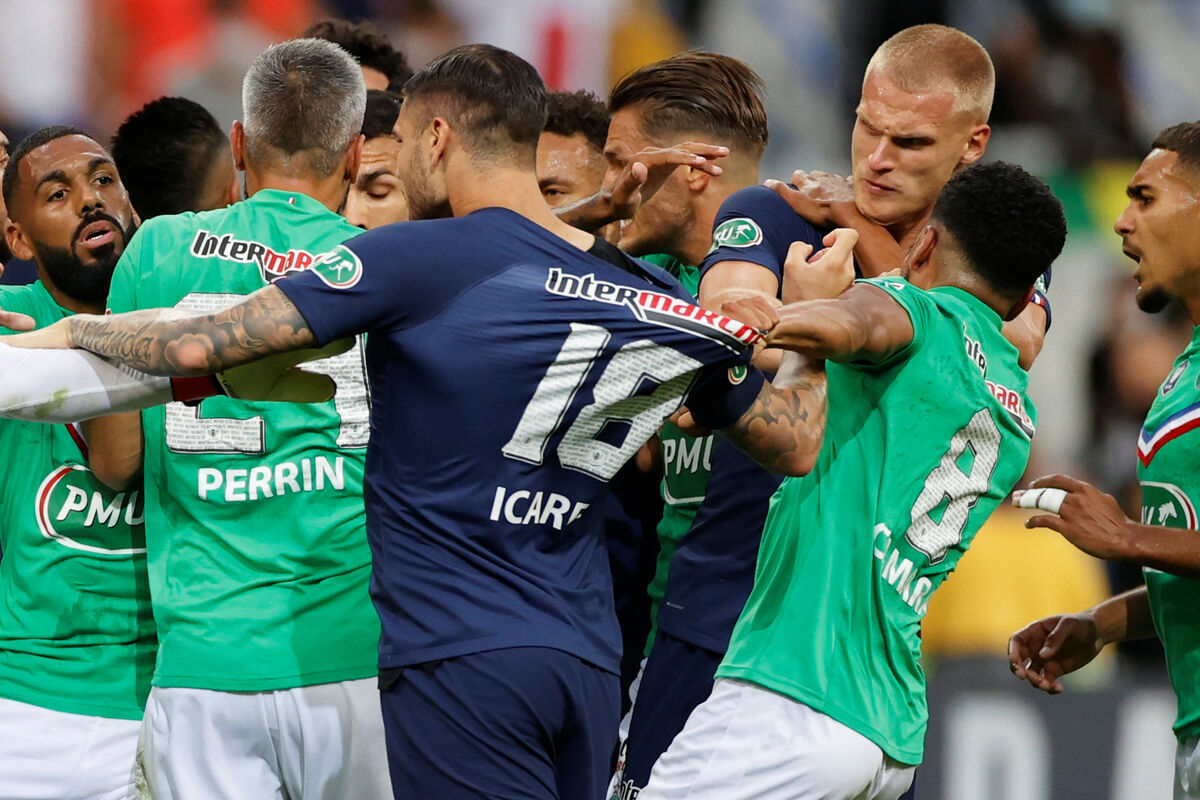 U 33. minutu, nakon grubog faula nad Kilijanom Mbapeom crveni karton dobio je Loik Perin, koji, inače, igra posljednji meč u karijeri, koju je proveo samo u Sent Etjenu, čiji je prvotimac od 2003. godine.