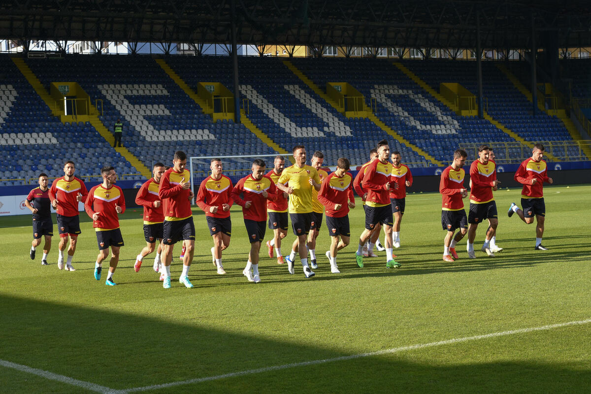 Crnogorski fudbaleri trenirali su danas na na Grbavici, stadionu Željezničara, uoči sjutrašnje prijateljske utakmice sa selekcijom Bosne i Hercegovine.
