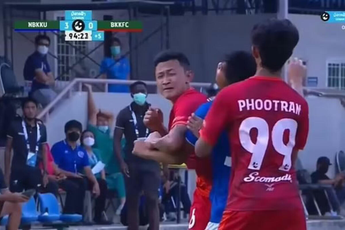 Nesvakidašnji snimak dolazi sa Tajlanda - na utakmici Treće lige između Univerziteta Sjeverni Bangkok i FK Bangkoka došlo je scena karakterističnih za muaj-tai, tj. tajlandski boks, jer je Aitsaret Noičaibun u sudijskom dodatku laktom nokautirao igrača domaćih Supasana Ruangsufanimita.