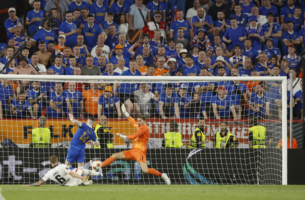 Ajntraht iz Frankfurta je osvajač Lige Evrope za sezonu 2021/2022 - njemačka ekipa je večeras nakon penala savladala Rendžers 5:4 (1:1 poslije 120 minuta), osvojila prvi evropski trofej poslije 42 godine i od naredne sezone igraće u Ligi šampiona.