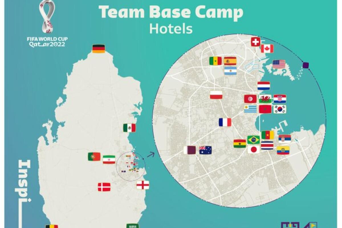 FIFA je objavila kako su 24 od 32 reprezentacije smještene unutar kratke vožnje jedna od druge u blizini glavnog grada Dohe.